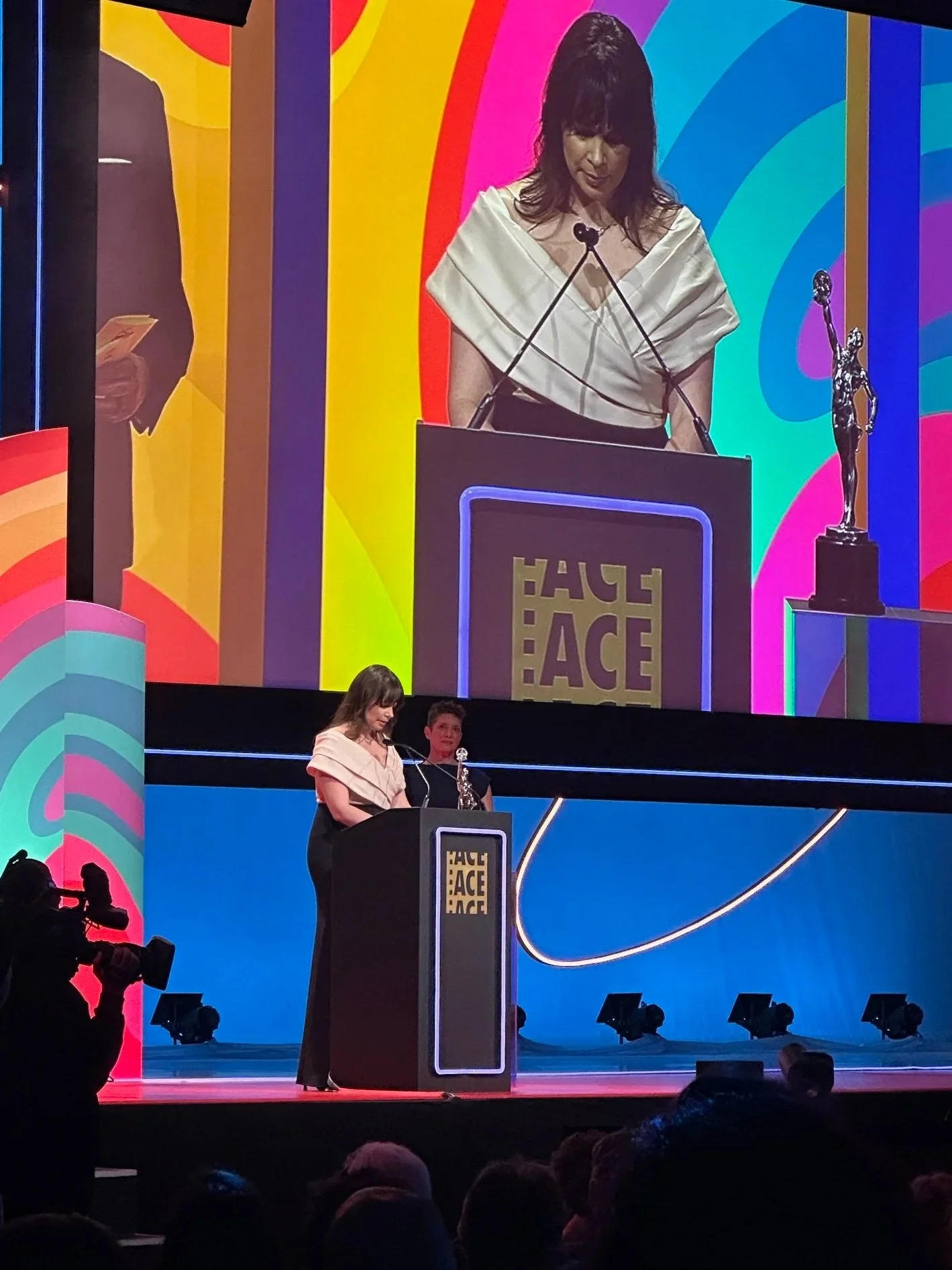 Erin Casper, ACE, accepting the ACE Eddie for her work on the short documentary ALL THE EMPTY ROOMS